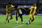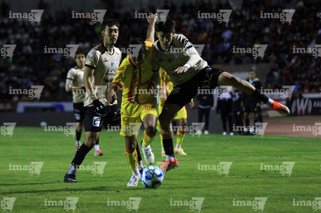 Zacatecas, Zacatecas, 6 de febrero de 2026. Edgar Martínez y José Ávila, durante el partido correspondiente a la jornada 5 del torneo Clausura 2026 de la Liga BBVA Expansión MX, entre los Mineros de Zacatecas y el Atlético Morelia, realizado en el estadio Carlos Vega Villalba. Foto: Imago7/ Raúl Martínez