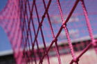Tlaxcala, Tlaxcala, 8 de febrero de 2026. Red de portería, durante el partido correspondiente a la jornada 5 del torneo Clausura 2026 de la Liga BBVA Expansión MX, entre los Coyotes de Tlaxcala y los Leones Negros de la UDG, realizado en el estadio Tlahuicole. Foto: Imago7/ Liz Romero