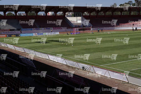 Tlaxcala, Tlaxcala, 8 de febrero de 2026. Panorámica del estadio, durante el partido correspondiente a la jornada 5 del torneo Clausura 2026 de la Liga BBVA Expansión MX, entre los Coyotes de Tlaxcala y los Leones Negros de la UDG, realizado en el estadio Tlahuicole. Foto: Imago7/ Liz Romero