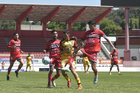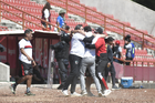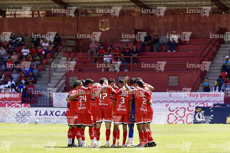Tlaxcala, Tlaxcala, 8 de febrero de 2026. Jugadores de Coyotes, durante el partido correspondiente a la jornada 5 del torneo Clausura 2026 de la Liga BBVA Expansión MX, entre los Coyotes de Tlaxcala y los Leones Negros de la UDG, realizado en el estadio Tlahuicole. Foto: Imago7/ Liz Romero