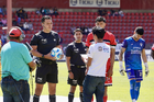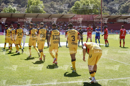Tlaxcala, Tlaxcala, 8 de febrero de 2026. Protocolo, durante el partido correspondiente a la jornada 5 del torneo Clausura 2026 de la Liga BBVA Expansión MX, entre los Coyotes de Tlaxcala y los Leones Negros de la UDG, realizado en el estadio Tlahuicole. Foto: Imago7/ Liz Romero