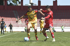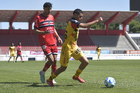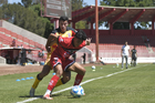 Tlaxcala, Tlaxcala, 8 de febrero de 2026. Luis Flores y Edson Santos, durante el partido correspondiente a la jornada 5 del torneo Clausura 2026 de la Liga BBVA Expansión MX, entre los Coyotes de Tlaxcala y los Leones Negros de la UDG, realizado en el estadio Tlahuicole. Foto: Imago7/ Liz Romero