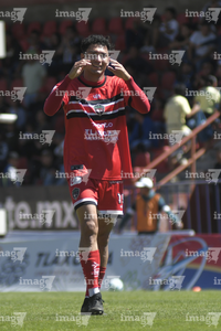 Tlaxcala, Tlaxcala, 8 de febrero de 2026. Gabino Espinoza en festejo, durante el partido correspondiente a la jornada 5 del torneo Clausura 2026 de la Liga BBVA Expansión MX, entre los Coyotes de Tlaxcala y los Leones Negros de la UDG, realizado en el estadio Tlahuicole. Foto: Imago7/ Liz Romero