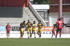 Tlaxcala, Tlaxcala, 8 de febrero de 2026. Jugadores de UDG en festejo, durante el partido correspondiente a la jornada 5 del torneo Clausura 2026 de la Liga BBVA Expansión MX, entre los Coyotes de Tlaxcala y los Leones Negros de la UDG, realizado en el estadio Tlahuicole. Foto: Imago7/ Liz Romero