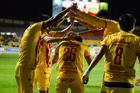 Morelia, Michoacan, 14 de febrero de 2026. Jaziel Martínez en festejo de gol, durante el partido correspondiente a la jornada 6 del torneo Clausura 2026 de la Liga BBVA Expansión MX, entre Atlético Morelia y los Venados de Merida, realizado en el estadio Morelos. Foto: Imago7/ Janik Frías