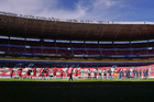 Guadalajara, Jalisco, 15 de febrero de 2026. Protocolo, durante el partido correspondiente a la jornada 6 del torneo Clausura 2026 de la Liga BBVA Expansión MX, entre los Leones Negros de la UDG y los Alteños de Tepatitlán, realizado en el estadio Jalisco. Foto: Imago7/Andrés Sepúlveda