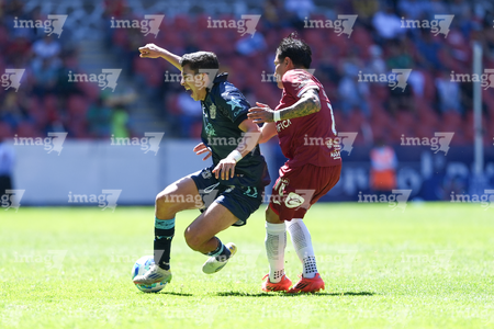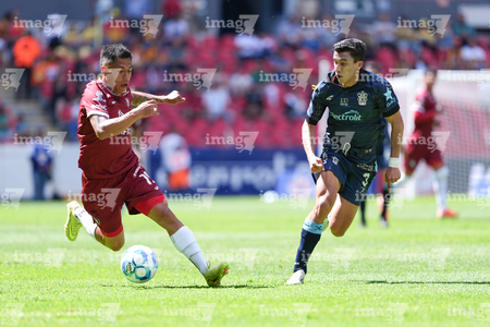 Guadalajara, Jalisco, 15 de febrero de 2026. Maximiliano Pinela y Bryan Mendoza, durante el partido correspondiente a la jornada 6 del torneo Clausura 2026 de la Liga BBVA Expansión MX, entre los Leones Negros de la UDG y los Alteños de Tepatitlán, realizado en el estadio Jalisco. Foto: Imago7/Andrés Sepúlveda