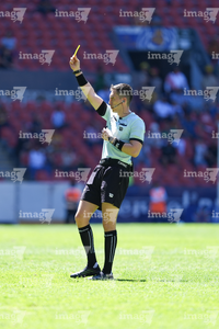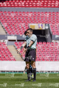 Guadalajara, Jalisco, 15 de febrero de 2026. Aldo Ballesteros Barba, árbitro central, durante el partido correspondiente a la jornada 6 del torneo Clausura 2026 de la Liga BBVA Expansión MX, entre los Leones Negros de la UDG y los Alteños de Tepatitlán, realizado en el estadio Jalisco. Foto: Imago7/ Alejandro Lias