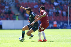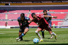 Guadalajara, Jalisco, 15 de febrero de 2026. Joel Pérez y Wiliam Guzmán, durante el partido correspondiente a la jornada 6 del torneo Clausura 2026 de la Liga BBVA Expansión MX, entre los Leones Negros de la UDG y los Alteños de Tepatitlán, realizado en el estadio Jalisco. Foto: Imago7/ Alejandro Lias