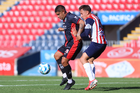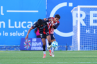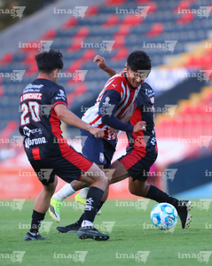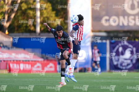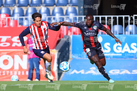 Tepatitlán, Jalisco, 7 de abril del 2026. Luis Egurrola y Edson Santos, durante el partido correspondiente a la jornada 7 del torneo Clausura 2026 de la Liga BBVA Expansión MX, entre el CD Tapatío y los Coyotes de Tlaxcala, realizado en el estadio “Tepa” Gómez. Foto: Imago7/ Juan Carlos Cubeyro.