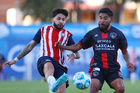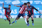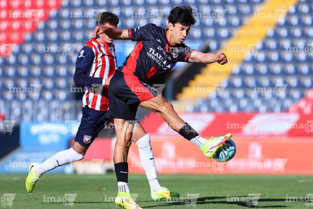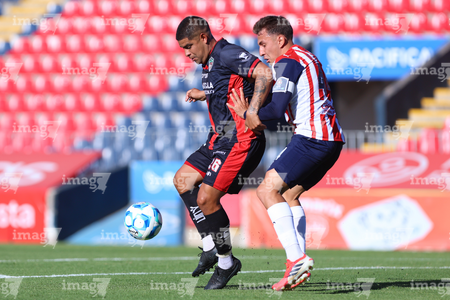 Tepatitlán, Jalisco, 7 de abril del 2026. Sergio Aguayo y Said Castañeda, durante el partido correspondiente a la jornada 7 del torneo Clausura 2026 de la Liga BBVA Expansión MX, entre el CD Tapatío y los Coyotes de Tlaxcala, realizado en el estadio “Tepa” Gómez. Foto: Imago7/ Juan Carlos Cubeyro.