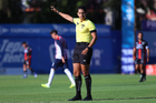 Tepatitlán, Jalisco, 7 de abril del 2026. Fernando Cruz, árbitro central, durante el partido correspondiente a la jornada 7 del torneo Clausura 2026 de la Liga BBVA Expansión MX, entre el CD Tapatío y los Coyotes de Tlaxcala, realizado en el estadio “Tepa” Gómez. Foto: Imago7/ Juan Carlos Cubeyro.