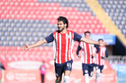 Tepatitlán, Jalisco, 7 de abril del 2026. Juan Liceaga en festejo, durante el partido correspondiente a la jornada 7 del torneo Clausura 2026 de la Liga BBVA Expansión MX, entre el CD Tapatío y los Coyotes de Tlaxcala, realizado en el estadio “Tepa” Gómez. Foto: Imago7/ Juan Carlos Cubeyro.