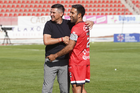 Tlaxcala, Tlaxcala, 28 de febrero de 2026. Gabriel Pereyra, Director Técnico y Pablo González, durante el partido correspondiente a la jornada 8 del torneo Clausura 2026 de la Liga BBVA Expansión MX, entre los Coyotes de Tlaxcala y los Alteños de Tepatitlán, realizado en el estadio Tlahuicole. Foto: Imago7/ Liz Romero