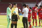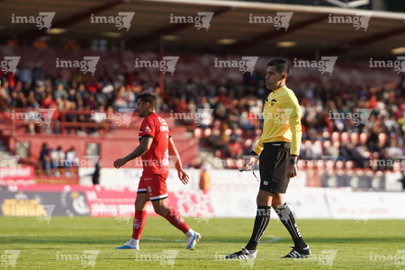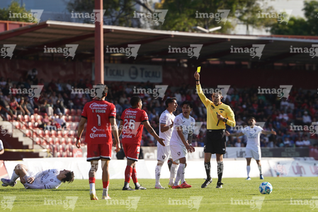 Tlaxcala, Tlaxcala, 28 de febrero de 2026. Héctor Salvador Solorio Arreola, árbitro central, durante el partido correspondiente a la jornada 8 del torneo Clausura 2026 de la Liga BBVA Expansión MX, entre los Coyotes de Tlaxcala y los Alteños de Tepatitlán, realizado en el estadio Tlahuicole. Foto: Imago7/ Liz Romero