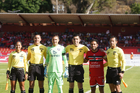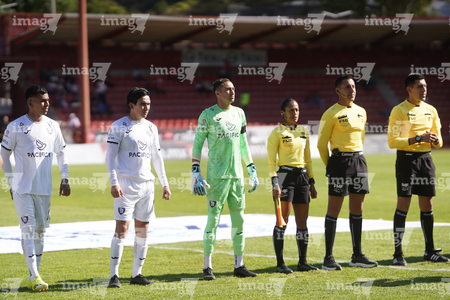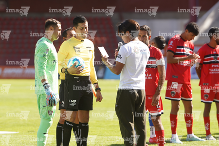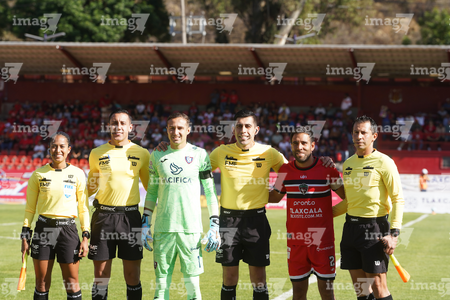 Tlaxcala, Tlaxcala, 28 de febrero de 2026. Protocolo, durante el partido correspondiente a la jornada 8 del torneo Clausura 2026 de la Liga BBVA Expansión MX, entre los Coyotes de Tlaxcala y los Alteños de Tepatitlán, realizado en el estadio Tlahuicole. Foto: Imago7/ Liz Romero
