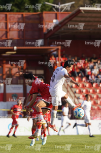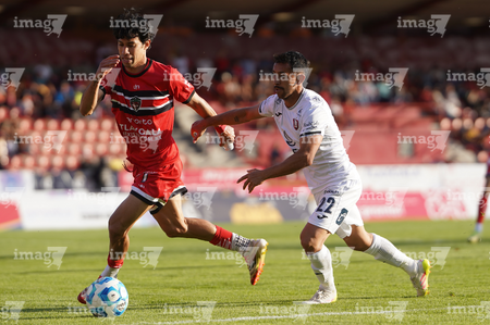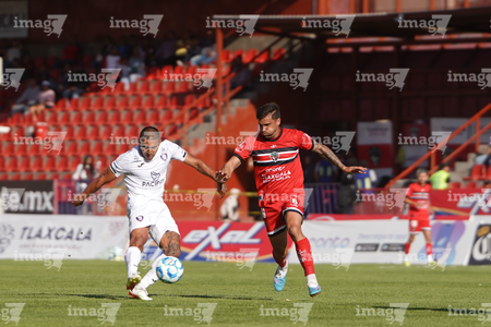 Tlaxcala, Tlaxcala, 28 de febrero de 2026. Pablo González y Wiliam Guzmán, durante el partido correspondiente a la jornada 8 del torneo Clausura 2026 de la Liga BBVA Expansión MX, entre los Coyotes de Tlaxcala y los Alteños de Tepatitlán, realizado en el estadio Tlahuicole. Foto: Imago7/ Liz Romero