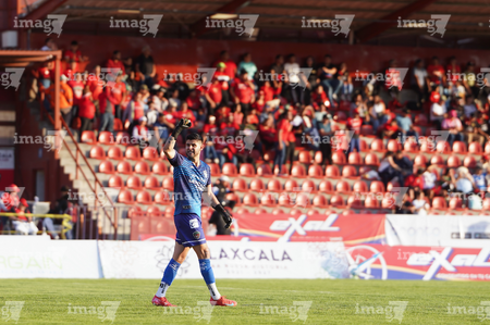 Tlaxcala, Tlaxcala, 28 de febrero de 2026. Gabino Espinoza en festejo, durante el partido correspondiente a la jornada 8 del torneo Clausura 2026 de la Liga BBVA Expansión MX, entre los Coyotes de Tlaxcala y los Alteños de Tepatitlán, realizado en el estadio Tlahuicole. Foto: Imago7/ Liz Romero
