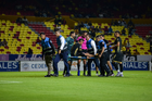 Morelia, Michoacan, 28 de febrero de 2026. Jugadores de Atlético Morelia en festejo de gol, durante el partido correspondiente a la jornada 8 del torneo Clausura 2026 de la Liga BBVA Expansión MX, entre Atlético Morelia y el Atlético La Paz, realizado en el estadio Morelos. Foto: Imago7/ Janik Frías
