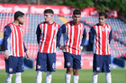 Tepatitlán, Jalisco, 6 de marzo del 2026. Jugadores de CD Tapatio, durante el partido correspondiente a la jornada 9 del torneo Clausura 2026 de la Liga BBVA Expansión MX, entre el CD Tapatío y las Iguanas del Cancún FC, realizado en el estadio “Tepa” Gómez. Foto: Imago7/Andrés Sepúlveda
