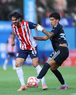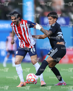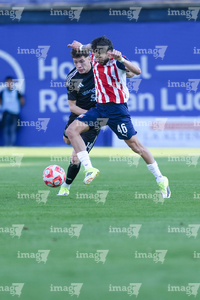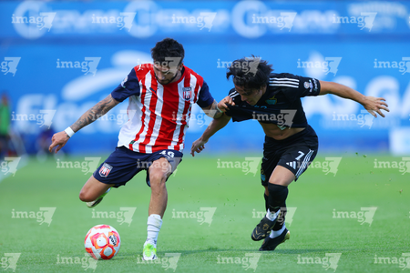 Tepatitlán, Jalisco, 6 de marzo del 2026. Luis Ledesma y Christopher Trejo, durante el partido correspondiente a la jornada 9 del torneo Clausura 2026 de la Liga BBVA Expansión MX, entre el CD Tapatío y las Iguanas del Cancún FC, realizado en el estadio “Tepa” Gómez. Foto: Imago7/ Juan Carlos Cubeyro.