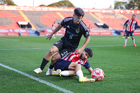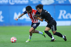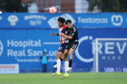 Tepatitlán, Jalisco, 6 de marzo del 2026. Vladimir Moragrega y Rodrigo Reyes, durante el partido correspondiente a la jornada 9 del torneo Clausura 2026 de la Liga BBVA Expansión MX, entre el CD Tapatío y las Iguanas del Cancún FC, realizado en el estadio “Tepa” Gómez. Foto: Imago7/ Juan Carlos Cubeyro.