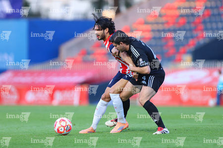 Tepatitlán, Jalisco, 6 de marzo del 2026. Jorge Guzmán e Iván Ochoa, durante el partido correspondiente a la jornada 9 del torneo Clausura 2026 de la Liga BBVA Expansión MX, entre el CD Tapatío y las Iguanas del Cancún FC, realizado en el estadio “Tepa” Gómez. Foto: Imago7/ Juan Carlos Cubeyro.