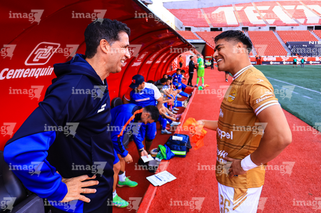 Tijuana, Baja California, 28 de marzo de 2026. Gustavo Díaz, director técnico y Edson Gutiérrez, durante el partido correspondiente a la jornada 12 del torneo Clausura 2026 de la Liga BBVA Expansión MX, entre los Dorados de Sinaloa y los Correcaminos de la UAT, realizado en el estadio Caliente. Foto: Imago7/Richard Vogel