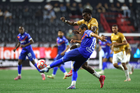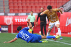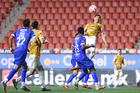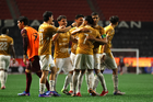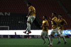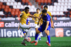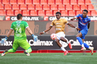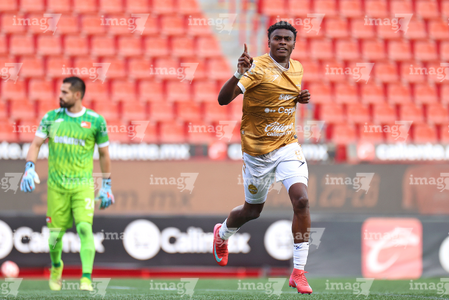 Tijuana, Baja California, 28 de marzo de 2026. Jhan Rengifo anota gol, durante el partido correspondiente a la jornada 12 del torneo Clausura 2026 de la Liga BBVA Expansión MX, entre los Dorados de Sinaloa y los Correcaminos de la UAT, realizado en el estadio Caliente. Foto: Imago7/ David Vega