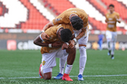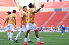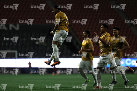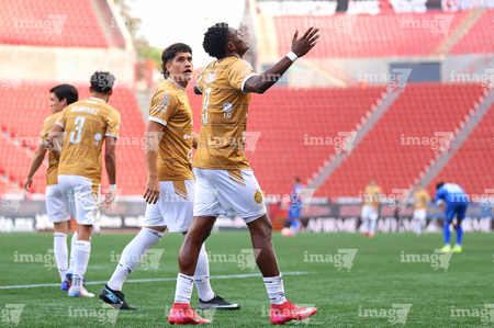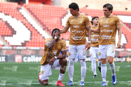 Tijuana, Baja California, 28 de marzo de 2026. Jhan Rengifo en festejo de gol, durante el partido correspondiente a la jornada 12 del torneo Clausura 2026 de la Liga BBVA Expansión MX, entre los Dorados de Sinaloa y los Correcaminos de la UAT, realizado en el estadio Caliente. Foto: Imago7/ David Vega