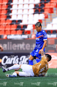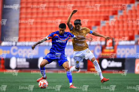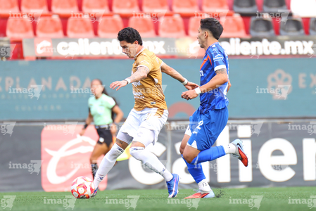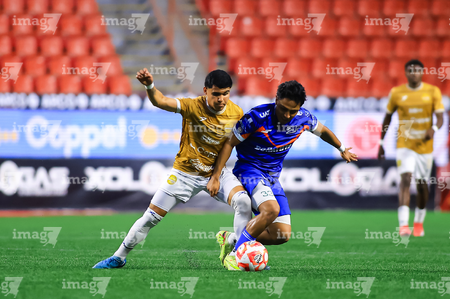 Tijuana, Baja California, 28 de marzo de 2026. Héctor Uribe y Willian Gonzalez, durante el partido correspondiente a la jornada 12 del torneo Clausura 2026 de la Liga BBVA Expansión MX, entre los Dorados de Sinaloa y los Correcaminos de la UAT, realizado en el estadio Caliente. Foto: Imago7/Richard Vogel
