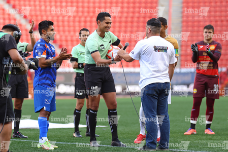 Tijuana, Baja California, 28 de marzo de 2026. Protocolo, durante el partido correspondiente a la jornada 12 del torneo Clausura 2026 de la Liga BBVA Expansión MX, entre los Dorados de Sinaloa y los Correcaminos de la UAT, realizado en el estadio Caliente. Foto: Imago7/Richard Vogel