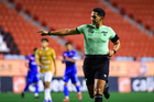 Tijuana, Baja California, 28 de marzo de 2026. José Luis Alba, árbitro central, durante el partido correspondiente a la jornada 12 del torneo Clausura 2026 de la Liga BBVA Expansión MX, entre los Dorados de Sinaloa y los Correcaminos de la UAT, realizado en el estadio Caliente. Foto: Imago7/Richard Vogel