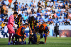 Tampico Madero, Tamaulipas, 19 de abril de 2026. Gael Moreno resultó lesionado, durante el partido correspondiente a la jornada 15 del torneo Clausura 2026 de la Liga BBVA Expansión MX, entre la Jaiba Brava del Tampico Madero y el Atlético Morelia, realizado en el estadio Tamaulipas. Foto: Imago7/ Richard Vogel