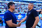 Tampico Madero, Tamaulipas, 19 de abril de 2026. Marco Ruíz, director técnico y Mario Ortíz, Director Técnico, durante el partido correspondiente a la jornada 15 del torneo Clausura 2026 de la Liga BBVA Expansión MX, entre la Jaiba Brava del Tampico Madero y el Atlético Morelia, realizado en el estadio Tamaulipas. Foto: Imago7/ Richard Vogel
