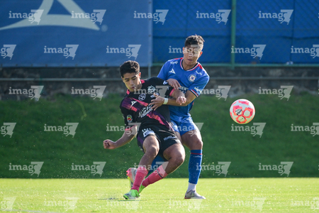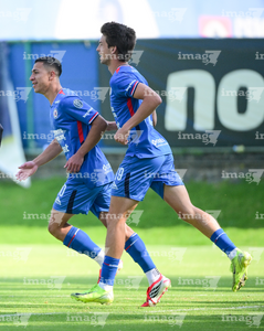 Ciudad de México, 17 de enero de 2026. Josué Díaz y Dylan Torres, durante el partido correspondiente a la jornada 3 del torneo Clausura 2026 de la Liga BBVA MX categoría Sub21, entre la Máquina Celeste del Cruz Azul y el Club Puebla, realizado en La Noria. Foto: Imago7/ Alexis Chavez