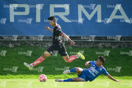 Ciudad de México, 17 de enero de 2026. Mario Anaya y Víctor Taboada, durante el partido correspondiente a la jornada 3 del torneo Clausura 2026 de la Liga BBVA MX categoría Sub21, entre la Máquina Celeste del Cruz Azul y el Club Puebla, realizado en La Noria. Foto: Imago7/ Alexis Chavez