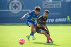 Ciudad de México, 17 de enero de 2026. Andrés Montaño anota gol, durante el partido correspondiente a la jornada 3 del torneo Clausura 2026 de la Liga BBVA MX categoría Sub21, entre la Máquina Celeste del Cruz Azul y el Club Puebla, realizado en La Noria. Foto: Imago7/ Alexis Chavez