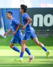 Ciudad de México, 17 de enero de 2026. Jugadores de Puebla en festejo de gol, durante el partido correspondiente a la jornada 3 del torneo Clausura 2026 de la Liga BBVA MX categoría Sub21, entre la Máquina Celeste del Cruz Azul y el Club Puebla, realizado en La Noria. Foto: Imago7/ Alexis Chavez