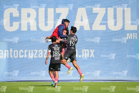 Ciudad de México, 17 de enero de 2026. Jugadores de Club Puebla en festejo de gol, durante el partido correspondiente a la jornada 3 del torneo Clausura 2026 de la Liga BBVA MX categoría Sub21, entre la Máquina Celeste del Cruz Azul y el Club Puebla, realizado en La Noria. Foto: Imago7/ Alexis Chavez