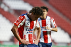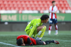 Tijuana, Baja California, 17 de enero de 2026. Brandon Ordorica en lamento, durante el partido correspondiente a la jornada 3 del torneo Clausura 2026 de la Liga BBVA MX categoría Sub21, entre los Xolos de Tijuana y el Atlético de San Luis, realizado en el estadio Caliente. Foto: Imago7/Alejandro Gutiérrez Mora