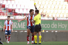 Tijuana, Baja California, 17 de enero de 2026. Raúl Patrón es amonestado, durante el partido correspondiente a la jornada 3 del torneo Clausura 2026 de la Liga BBVA MX categoría Sub21, entre los Xolos de Tijuana y el Atlético de San Luis, realizado en el estadio Caliente. Foto: Imago7/Alejandro Gutiérrez Mora