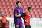 Tijuana, Baja California, 17 de enero de 2026. Eduardo Ochoa, durante el partido correspondiente a la jornada 3 del torneo Clausura 2026 de la Liga BBVA MX categoría Sub21, entre los Xolos de Tijuana y el Atlético de San Luis, realizado en el estadio Caliente. Foto: Imago7/Alejandro Gutiérrez Mora