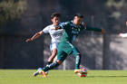 Querétaro, Querétaro, 07 de febrero 2026. Joaquín Gasparini (D), durante el partido correspondiente a la jornada 5 del torneo Clausura 2026 de la Liga BBVA MX categoría Sub21, entre los Gallos Blancos del Querétaro y los Esmeraldas del León, realizado en el CEGAR. Foto: Imago7/