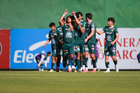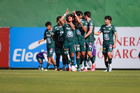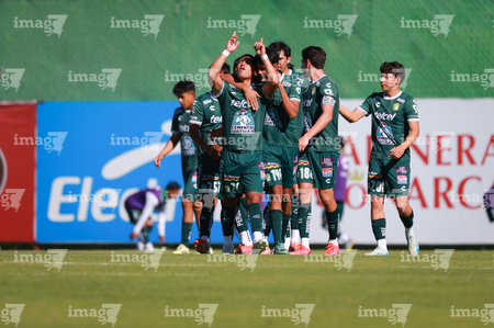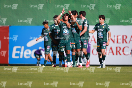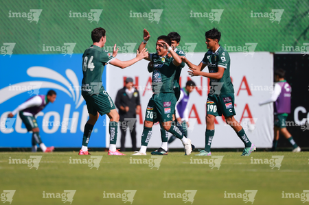 Querétaro, Querétaro, 07 de febrero 2026. Jugadores de León sub21 en festejo de gol, durante el partido correspondiente a la jornada 5 del torneo Clausura 2026 de la Liga BBVA MX categoría Sub21, entre los Gallos Blancos del Querétaro y los Esmeraldas del León, realizado en el CEGAR. Foto: Imago7/