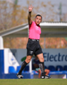 Querétaro, Querétaro, 07 de febrero 2026. Mauricio Rodríguez Martínez, árbitro central, durante el partido correspondiente a la jornada 5 del torneo Clausura 2026 de la Liga BBVA MX categoría Sub21, entre los Gallos Blancos del Querétaro y los Esmeraldas del León, realizado en el CEGAR. Foto: Imago7/