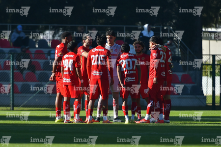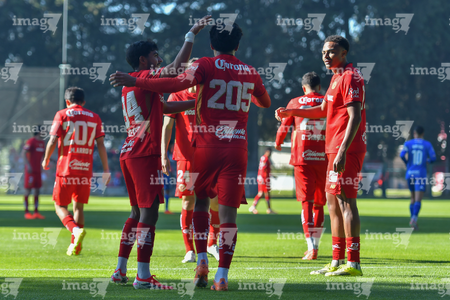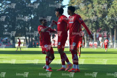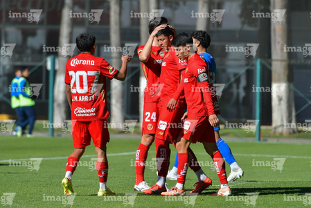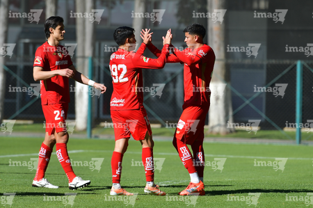 Toluca, Estado de México, 07 de febrero 2026. Jugadores del Toluca sub21 , durante el partido correspondiente a la jornada 5 del torneo Clausura 2026 de la Liga BBVA MX categoría Sub21, entre los Diablos Rojos del Toluca y la Máquina Celeste del Cruz Azul, realizado en las instalaciones de Metepec. Foto: Imago7/ Arturo Hernández