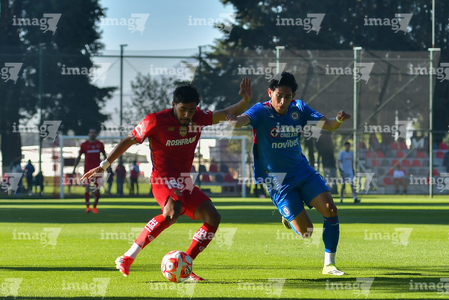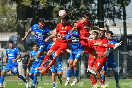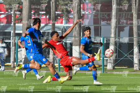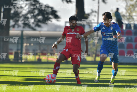 Toluca, Estado de México, 07 de febrero 2026. Jugadores de Cruz Azul sub21 , durante el partido correspondiente a la jornada 5 del torneo Clausura 2026 de la Liga BBVA MX categoría Sub21, entre los Diablos Rojos del Toluca y la Máquina Celeste del Cruz Azul, realizado en las instalaciones de Metepec. Foto: Imago7/ Arturo Hernández