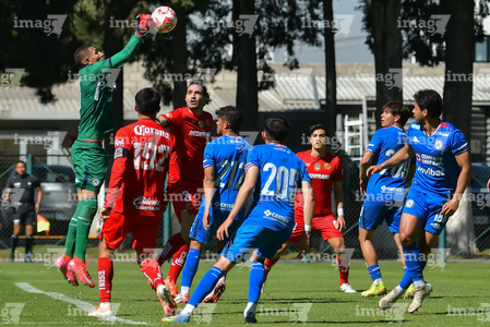 Toluca, Estado de México, 07 de febrero 2026. Jugadores de Cruz Azul sub21, durante el partido correspondiente a la jornada 5 del torneo Clausura 2026 de la Liga BBVA MX categoría Sub21, entre los Diablos Rojos del Toluca y la Máquina Celeste del Cruz Azul, realizado en las instalaciones de Metepec. Foto: Imago7/ Arturo Hernández