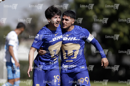 Puebla, Puebla, 13 de febrero de 2026. Edgar Quintanar en festejo de gol, durante el partido correspondiente a la jornada 6 del torneo Clausura 2026 de la Liga BBVA MX categoría Sub21, entre el Club Puebla y los Pumas de la UNAM, realizado en el Estadio Club Alpha 3. Foto: Imago7/ Mireya Novo